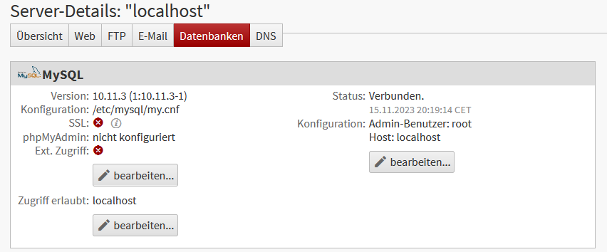 • Serververwaltung: Abruf der Serverliste, Anlegen neuer Server, Löschen von Servern