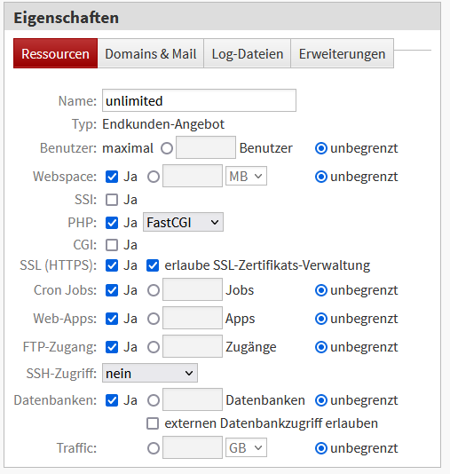 • Domains: Abruf aller Domain/Subdomains inkl. Einstellungen