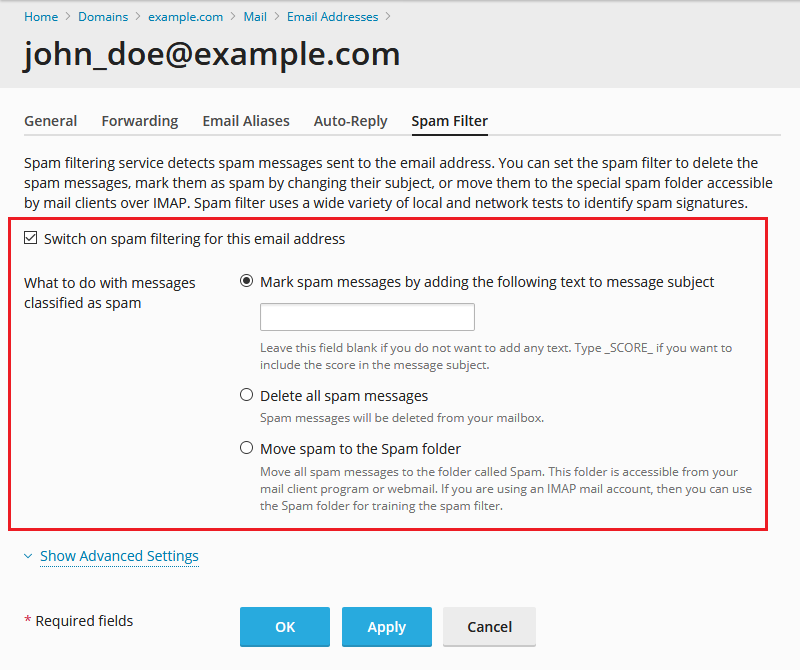 Bei uns kann der Kunde den sekundären Spamfilter ausschalten. Wenn er das nicht tut, werden Mails automatisch in den Spamfolder verschoben.