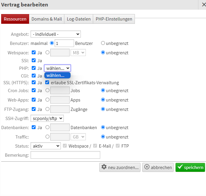 gibt es in LiveConfig eine Möglichkeit, PHP-Umgebungsvariablen (Environment Variables) zentral bzw. vertragsweise zu setzen?